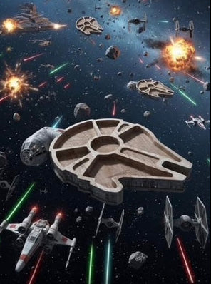The Falcon represents our mid-sized offering in dual-purpose entertaining. This reversible design features a dedicated charcuterie surface on one side and a functional cutting board on the reverse, accommodating both presentation and preparation. Crafted from premium butcherblock wood and finished with Odies Oil for durability and food safety, it includes a removable sauce cup for service. Dimensions: 15" × 11.5".